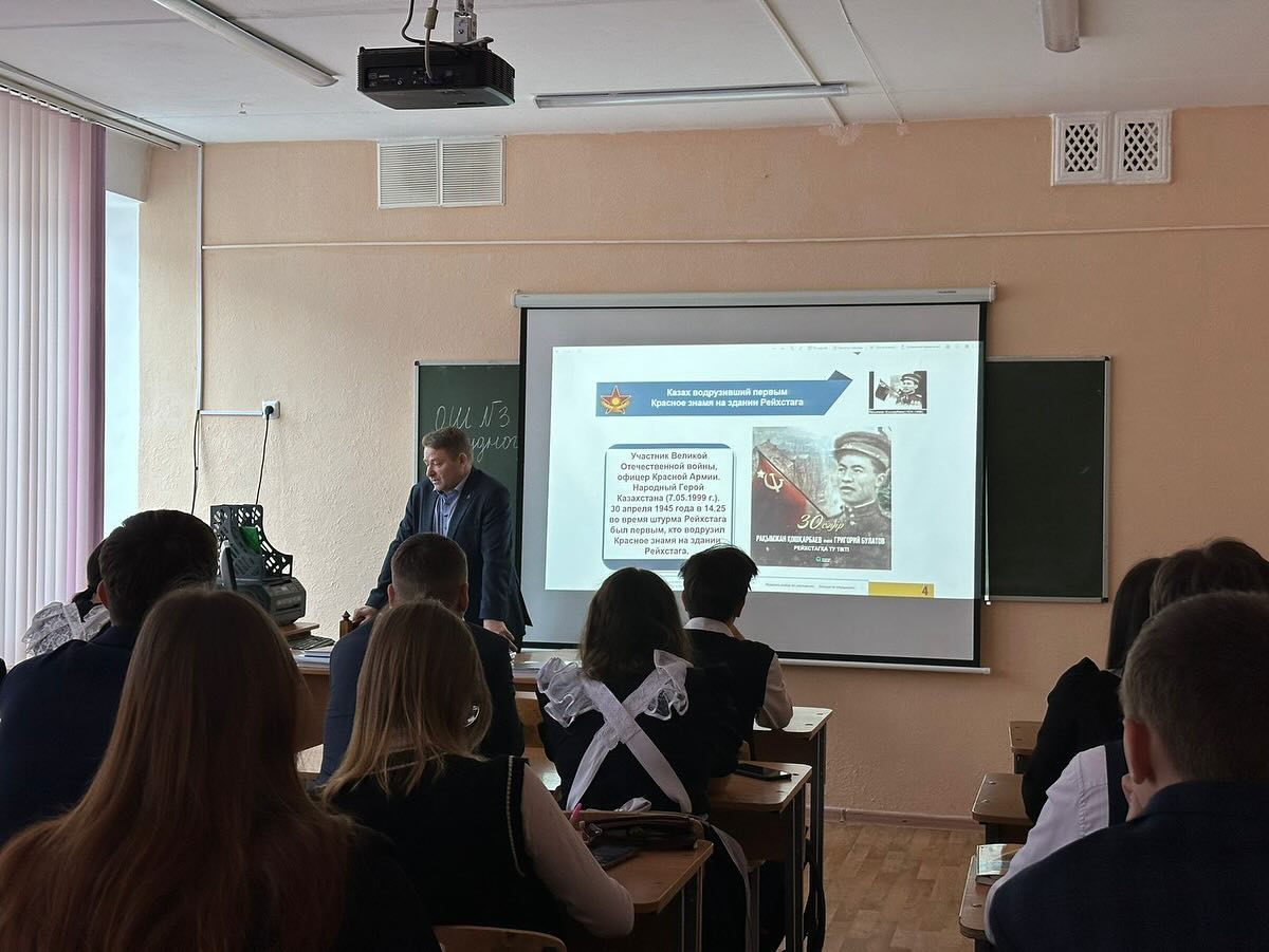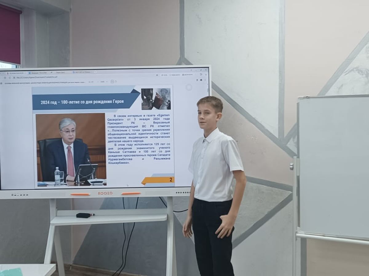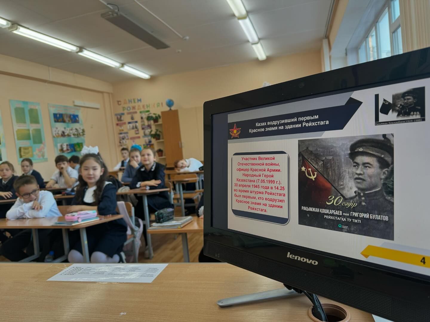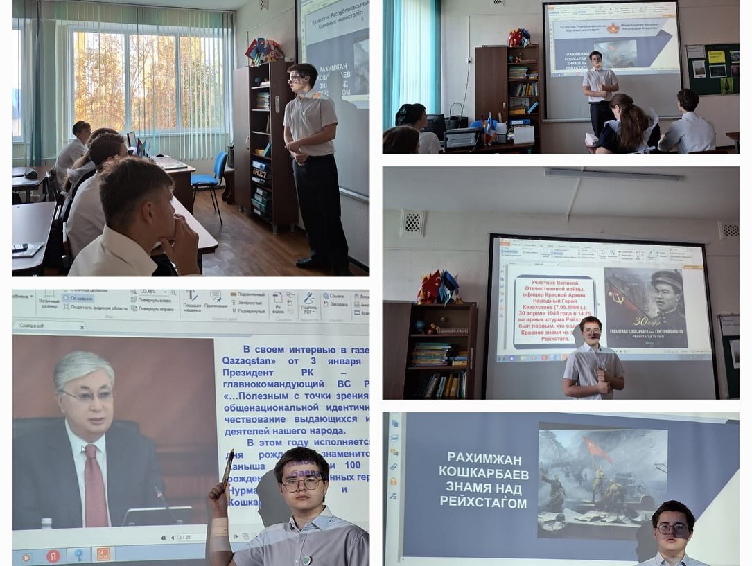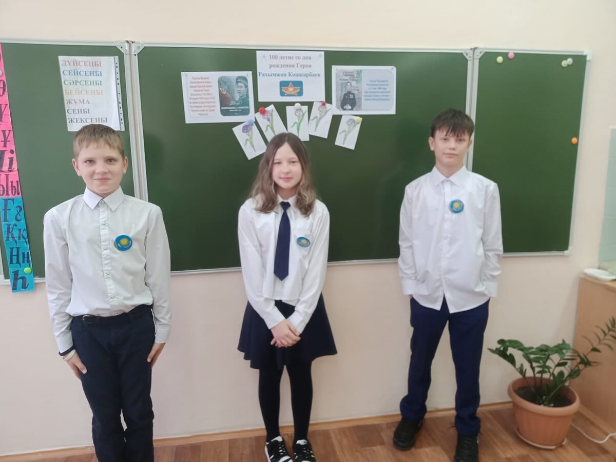 Сегодня в нашей школе прошел особенный классный час, посвященный 100 - летию великого героя Рахимжана Кошкарбаева. Его подвиг навсегда останется в нашем сердце и памяти!