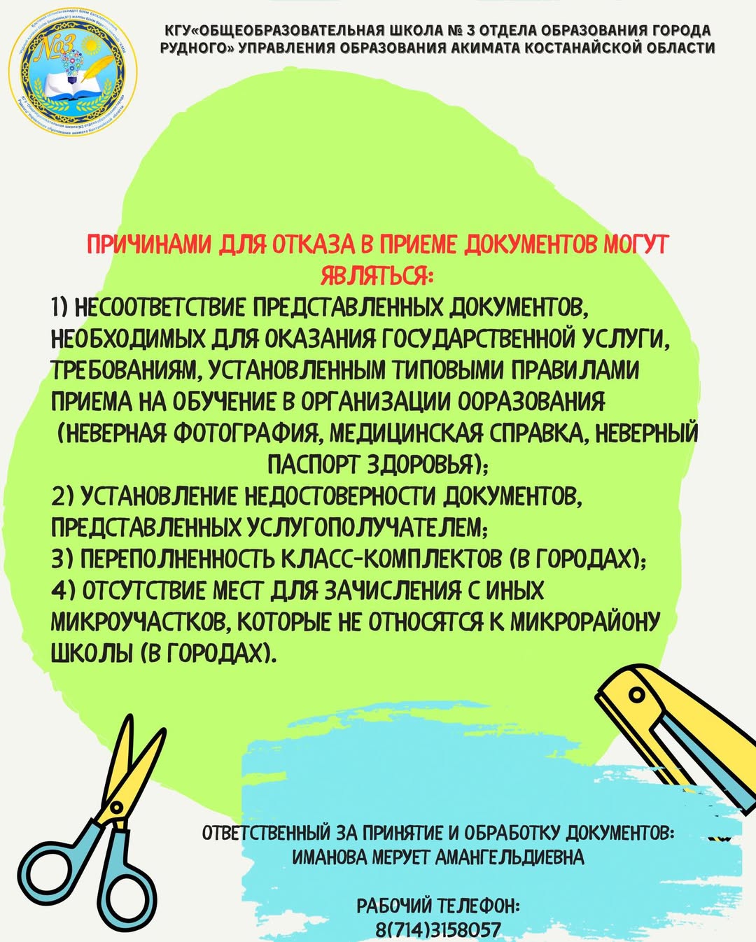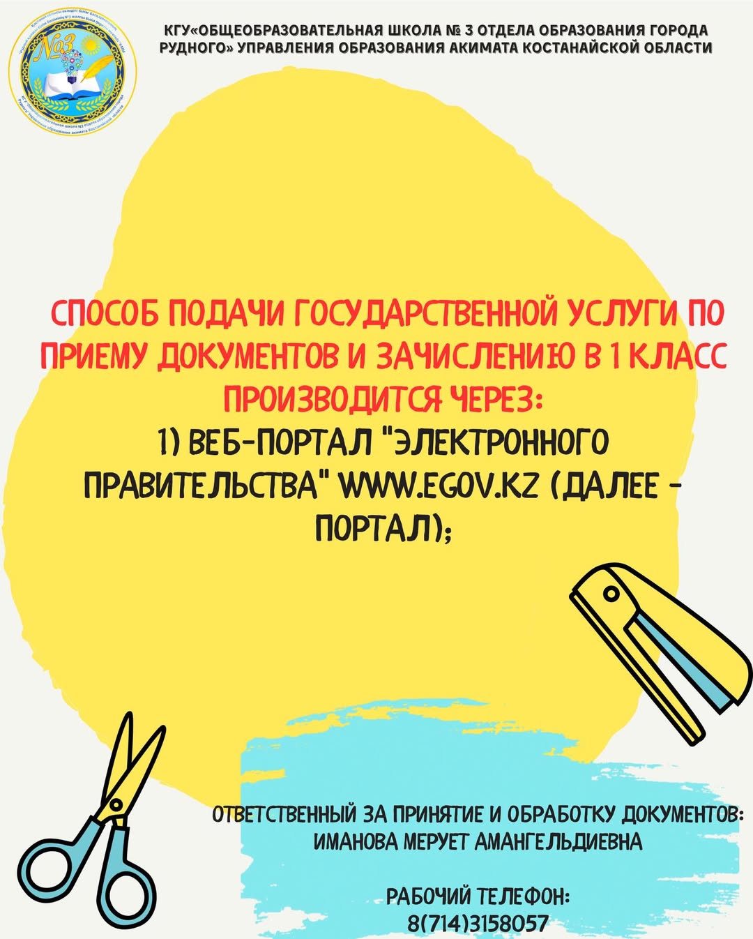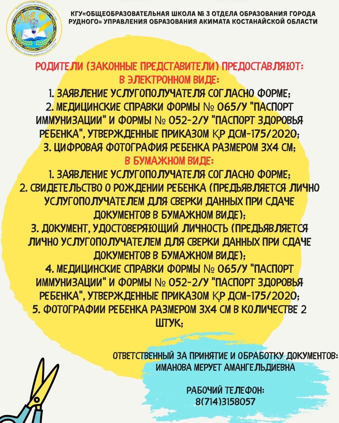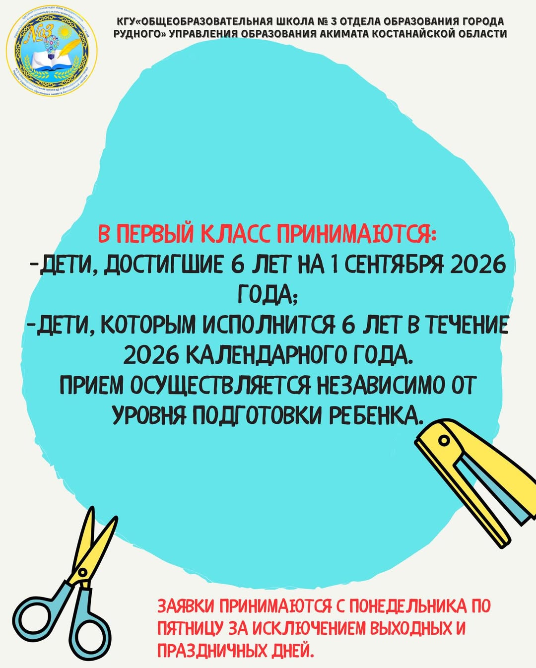 C 18 июня начинается прием документов в 1 класс КГУ «Общеобразовательная школа Nº 3 отдела образования города Рудного» Управления образования акимата